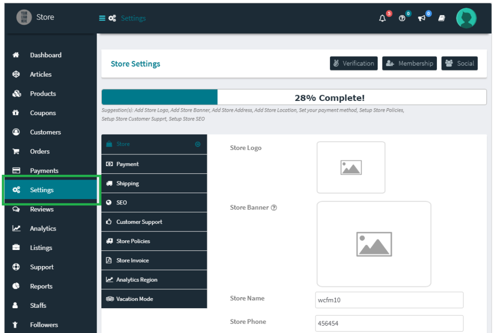 If any vendor skipped setup widget or want to change any store setting in future then they can do this easily from their dashboard as well.