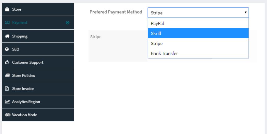 Payment is also very much essential as without payment setting vendor will not able to withdrawal their commissions.