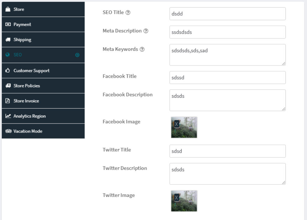 Vendor may set their store social and SEO related setting from here.