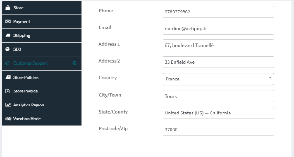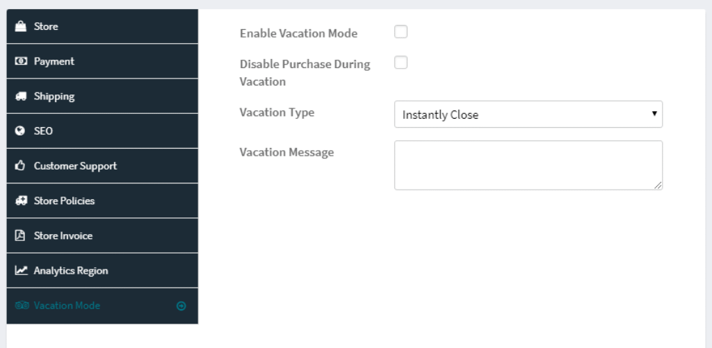 Vendor may setup their store vacation from here.