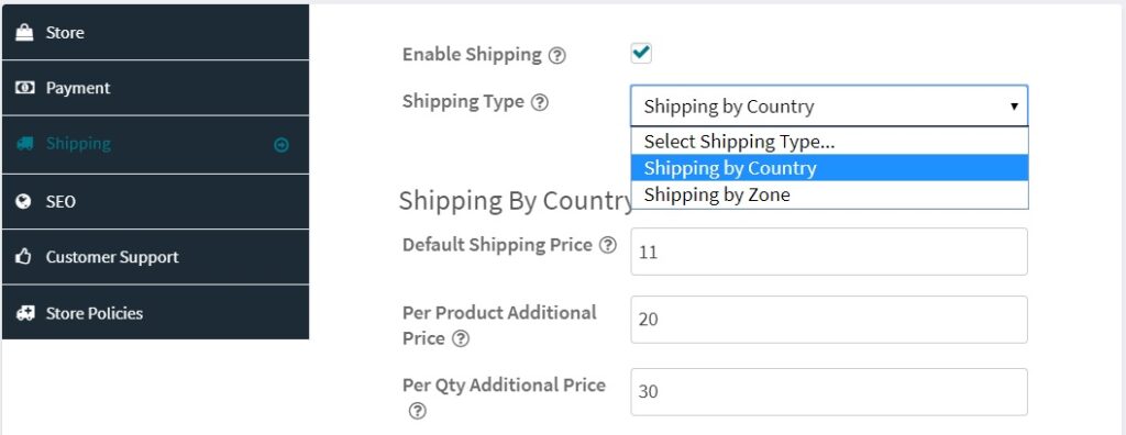 Vendors may setup their store shipping with all available options from here.