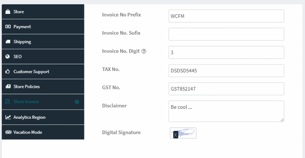 Vendor may setup their store invoice from here.