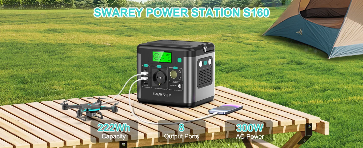 Specification: SWAREY S160 300W(peak 600W) Portable Power Station 222Wh Solar Generator Powerstation Chargers Backup Emergency Power Supply