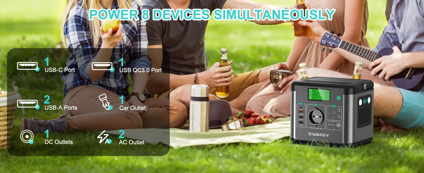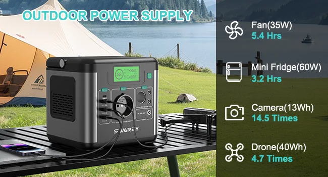 γMultiple Charging Methods & Safety MonitoringγBuilt-in professional MPPT controller, you can charge it via a wall outlet, a car charger, and a SWAREY 100W solar panel (not included). The battery temperature is displayed on the screen during charging and discharging. The battery management system (BMS) provides temperature control, voltage regulation, and short-circuit protection.