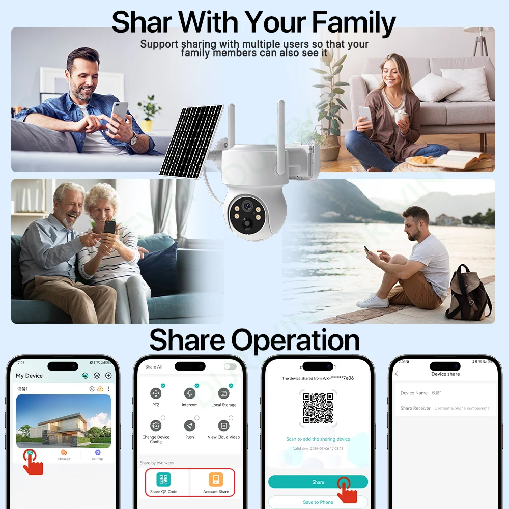 Your camera supports multiple users to view on their iPhone/Android phones at the same time. You can share your camera with your friends and family and share great moments.